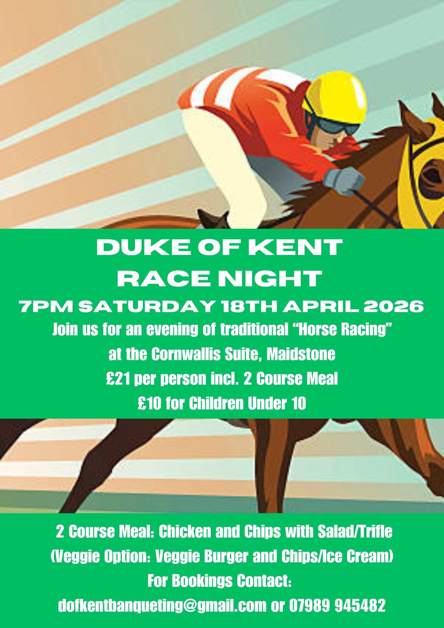 Duke Of Kent Race Night - Saturday 18th April 2026 7pm Start